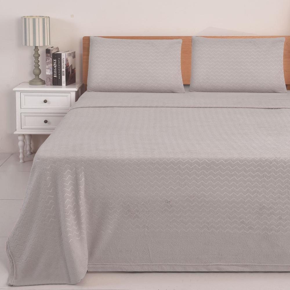 Juego de Sábanas Coral Fleece Ultra Suave Chantilly King Gris Plata