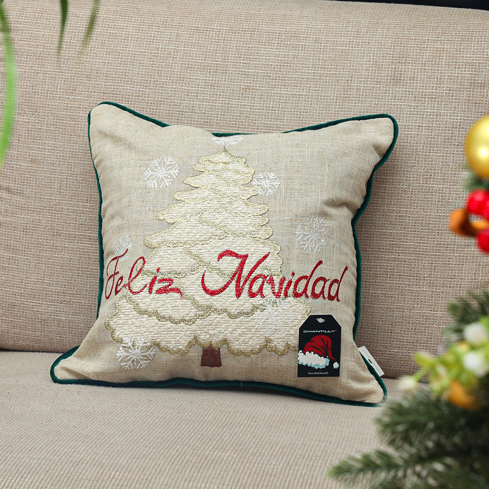 ¡Transforma tu hogar en un escenario de ensueño navideño con esta pieza única!"Funda de Cojín Blanca Navidad" . Con un toque festivo y elegante, el diseño destaca un árbol de Navidad blanco en el centro, creando un contraste encantador con el fondo blanco de la funda. El mensaje "Feliz Navidad" en letras rojas vibrantes rodea el árbol, añadiendo un toque de color y alegría a la pieza. Ideal para complementar tu decoración navideña con un estilo limpio y sofisticado, esta funda de cojín aportará un aire de celebración y frescura a cualquier habitación durante la temporada festiva. ¡Haz que tu hogar brille con el espíritu de la Navidad que Chantilly te entrega, creando un ambiente cálido y acogedor con esta pieza unica! Adquiérelo ahora y convierte cada Navidad en una experiencia mágica.